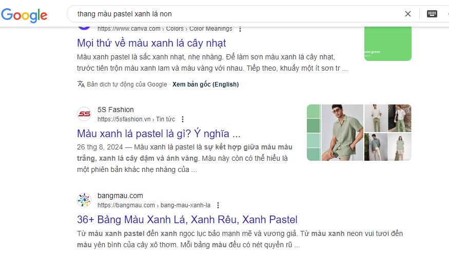 Để có nhiều ý tưởng về trang trí phối màu thì các bạn tìm cụm từ "thang màu pastel+ màu muốn pha" và "bánh xe màu sắc" để có được sự phối màu chuyên nghiệp, bánh đẹp, sang, chuẩn nghệ thuật nhất nhé, ví dụ tìm cụm từ "thang màu pastel xanh lá non" ta sẽ thu được kết quả như hình dưới: