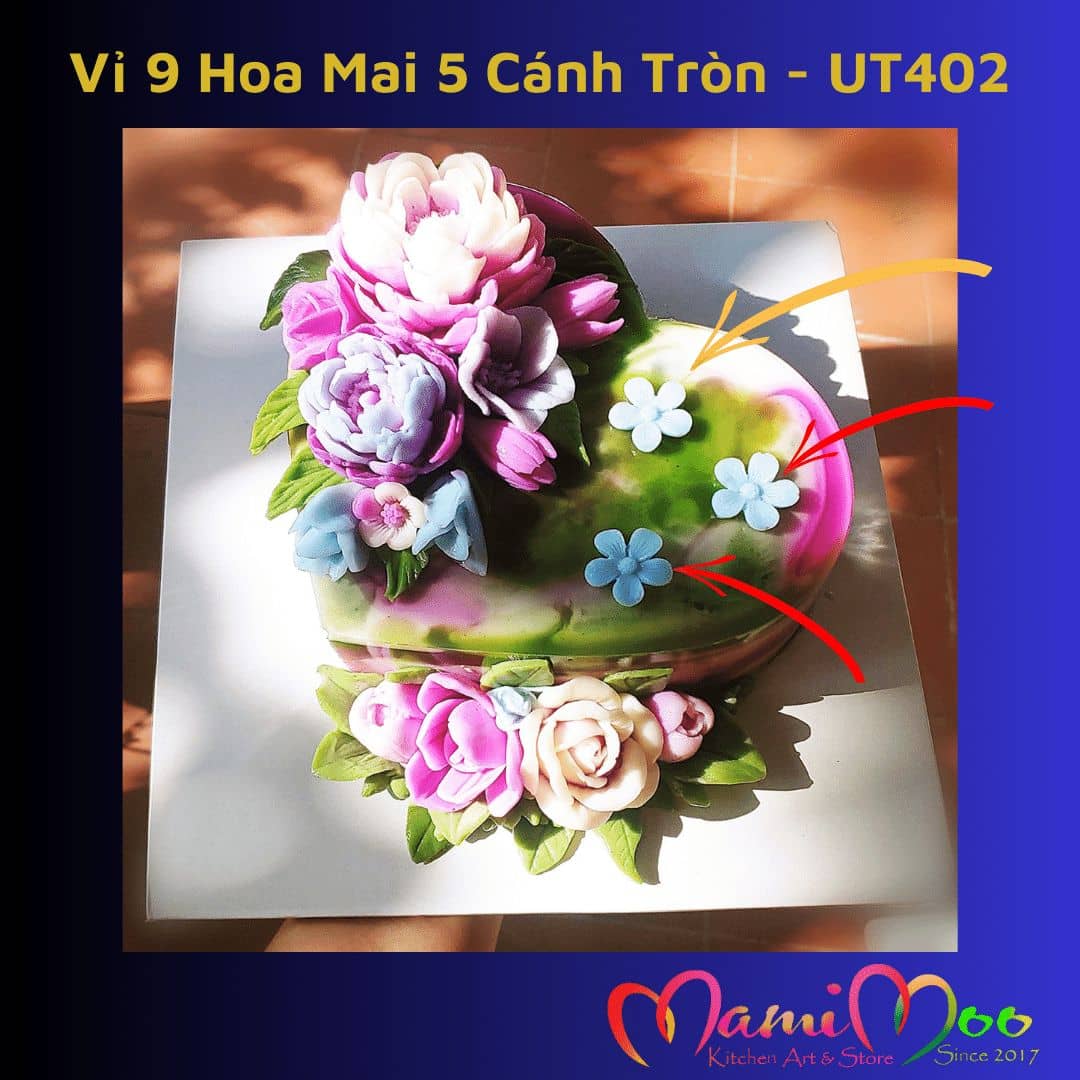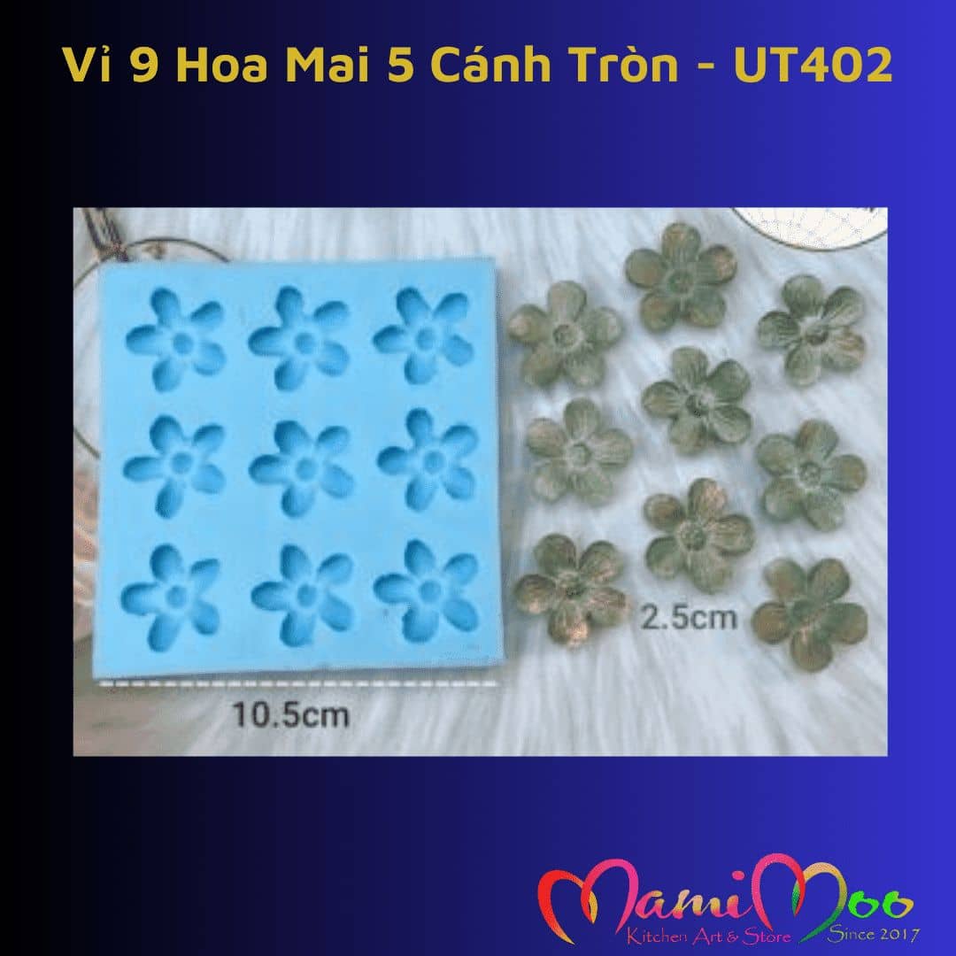 Khuôn Silicon Vỉ 9 Hoa Mai Nhí 5 Cánh Tròn - UT402