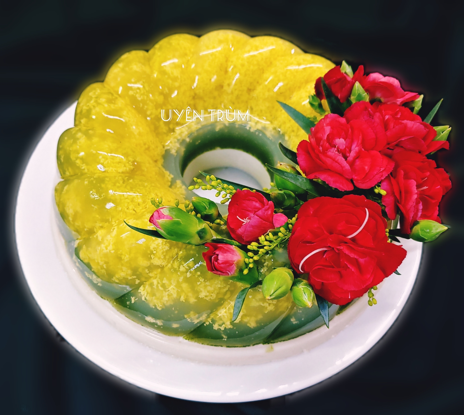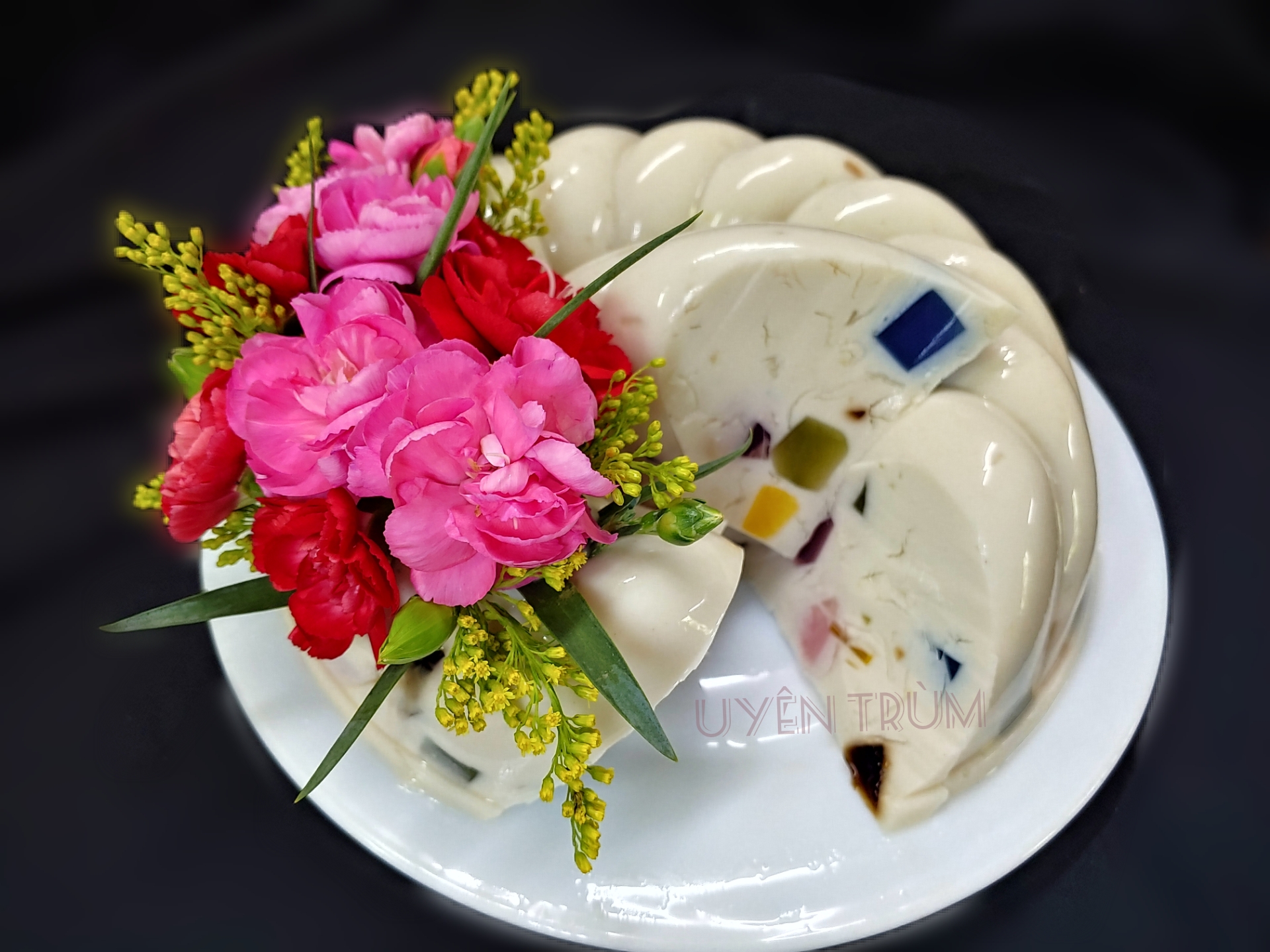 9.19. Mẫu BÁNH RAU CÂU TRANG TRÍ VỚI HOA TƯƠI