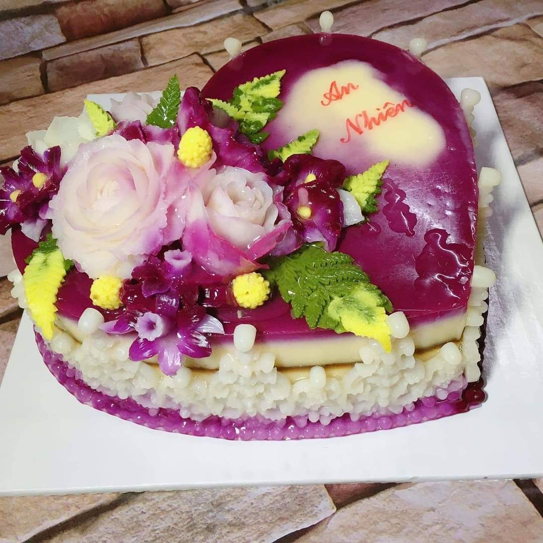 9.26. Mẫu BÁNH RAU CÂU KHUÔN TIM 18CM TRANG TRÍ HOA