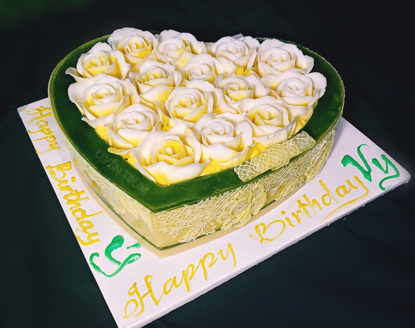 Mẫu bánh rau câu tim 18cm hoa nổi