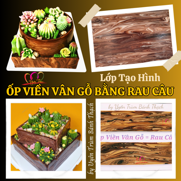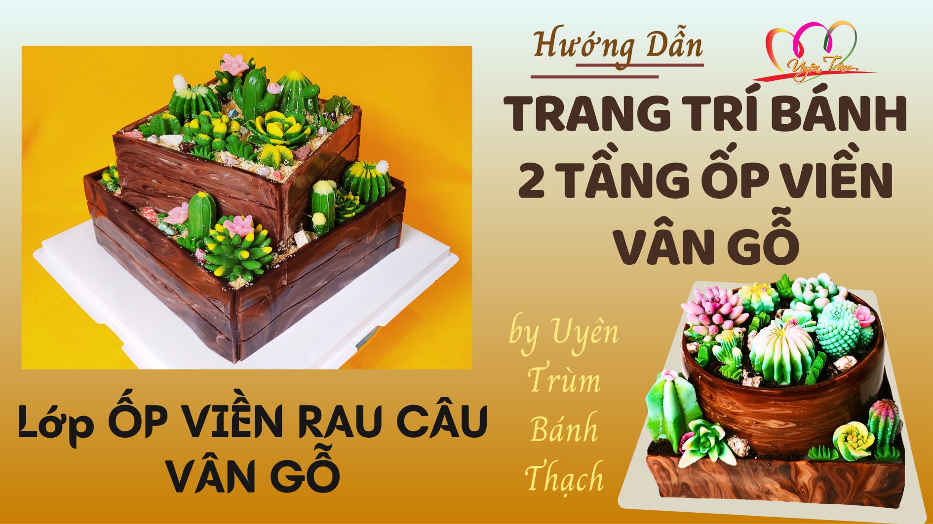Bài 2: Đổ ỐP VIỀN VÂN GỖ LIM - Trang trí bánh 2 tầng xương rồng sen đá
