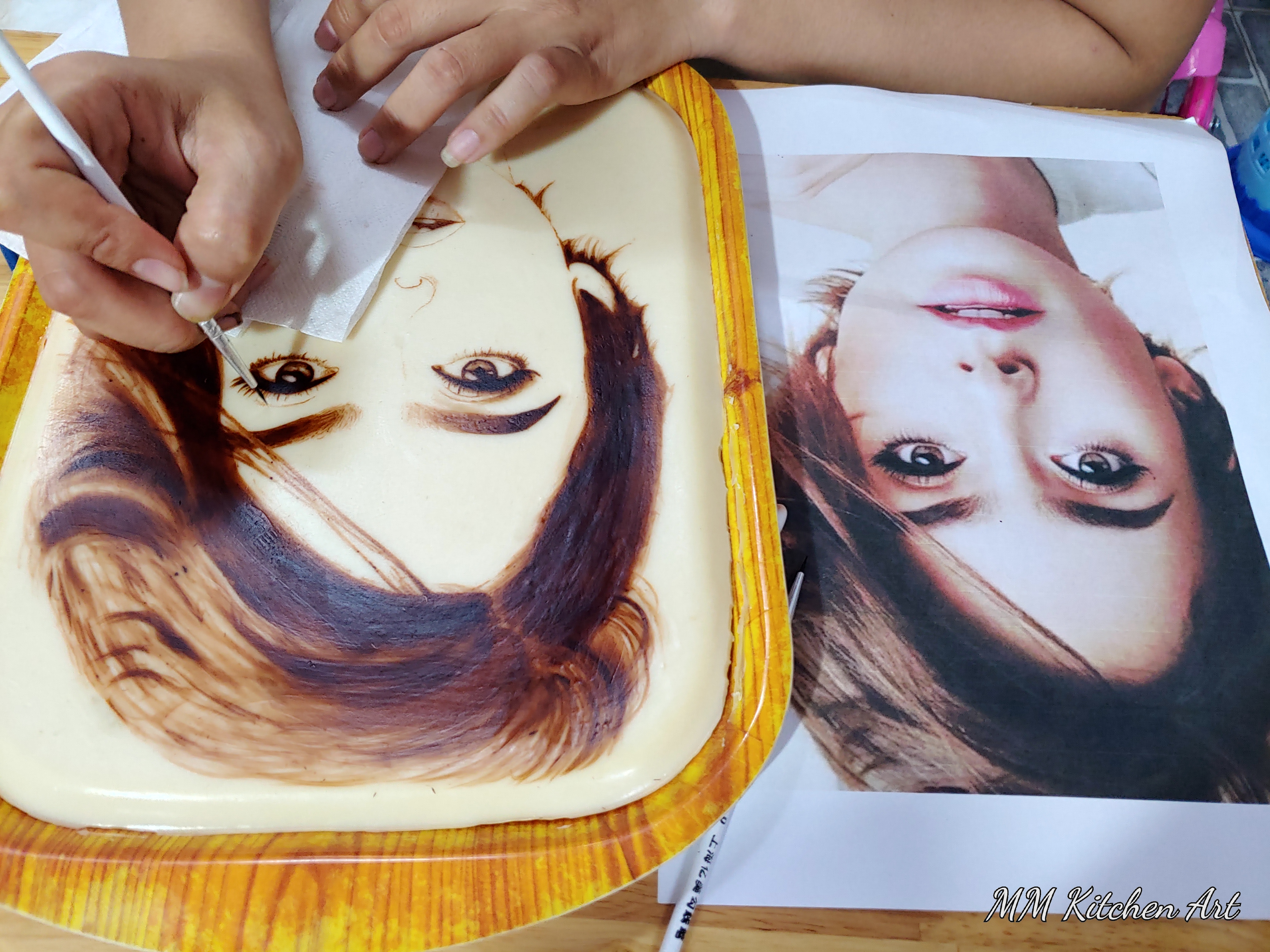 Phần 6: Tô hoàn thiện mặt bánh vẽ chân dung - mẫu 2 - Địch Lệ Nhiệt Ba